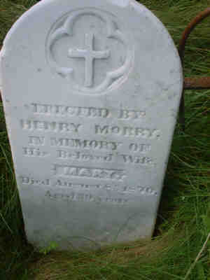 1. Religion: Roman Catholic. 111 Mary married Henry Sweetland MORRY, son of Matthew MORRY II JP and Anne SANDERS, circa 1850 in Ferryland, Newfoundland and Labrador, Canada.793 (Henry Sweetland MORRY was born on 1 Jun 1821 in Calvert, Newfoundland and Labrador, Canada 111, christened on 27 Sep 1823 in Ferryland, Newfoundland and Labrador, Canada,189,190,461 died on 11 Aug 1897 in Shores Cove, Cape Broyle, Newfoundland and Labrador, Canada 54,420,422,423 and was buried after 11 Aug 1897 in Ferryland, Newfoundland and Labrador, Canada 54,126,423.). The cause of his death was Old Age. |