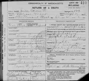 1. Alt. Birth, 5 May 1840, Devon, England. 3089 2. Religion: Converted from C of E to Catholic, 1848. 757 3. Residence: 266 Pleasant St, 11 Sep 1906, Melrose, Middlesex, Massachusetts, United States of America. 53 Edwin married Mary WINSOR, daughter of John WINSOR and Ann EVANS. (Mary WINSOR was born in 1848 in Aquaforte, Newfoundland and Labrador, Canada 757 and died on 25 May 1881 757.) |