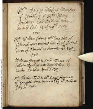 1. Alt. Birth, Cir 1692, England. 696 Joan married William CARTER, son of William CARTER and Anna BANKES, on 20 Nov 1710 in Bicton, Budleigh Salterton, Devon, England 696,713.,3269 (William CARTER was born on 7 Feb 1688/89 in Exeter, Devon, England 952 and was christened on 5 Mar 1688/89 in Exeter, Devon, England 952.) |