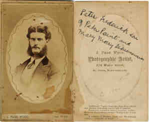 1. Alt. Birth, Cir 1848, St. John's, Newfoundland and Labrador, Canada. 139 2. Membership: Inducted as a member of the St. John's Avalon Lodge, Freemasons, 11 Jan 1883, St. John's, Newfoundland and Labrador, Canada. 637 Peter F Le Messurier 3. Occupation: Draper, 11 Jan 1883, St. John's, Newfoundland and Labrador, Canada. 637 4. Occupation: Salesman, according to christening record of daughter Isabelle, 1885, St. John's, Newfoundland and Labrador, Canada. 1202 5. Residence: New Gower St, 4 Jun 1890, St. John's, Newfoundland and Labrador, Canada. 659 6. Occupation: Draper, 17 Apr 1900, St. John's, Newfoundland and Labrador, Canada. 1203 7. Alt. Death: From Cemetery Record, 3 May 1921, Kilbride, St. John's, Newfoundland and Labrador, Canada. 694 Peter married Emma Mary Seraphina LONG, daughter of Thomas LONG and Seraphina HUIE, on 21 May 1876 in St. John's, Newfoundland and Labrador, Canada 220.,735 (Emma Mary Seraphina LONG was born on 25 May 1851 in St. John's, Newfoundland and Labrador, Canada 1204 and died on 6 Oct 1939 in St. John's, Newfoundland and Labrador, Canada 1205.)
