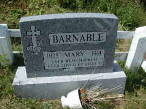 Mary married Ronald BARNABLE, son of William BARNABLE and Esther Ann BARNABLE. (Ronald BARNABLE was born circa 1922 in Ferryland, Newfoundland and Labrador, Canada,3599 died in 1984 in Ferryland, Newfoundland and Labrador, Canada 3599 and was buried in 1984 in Ferryland, Newfoundland and Labrador, Canada 3599.) |